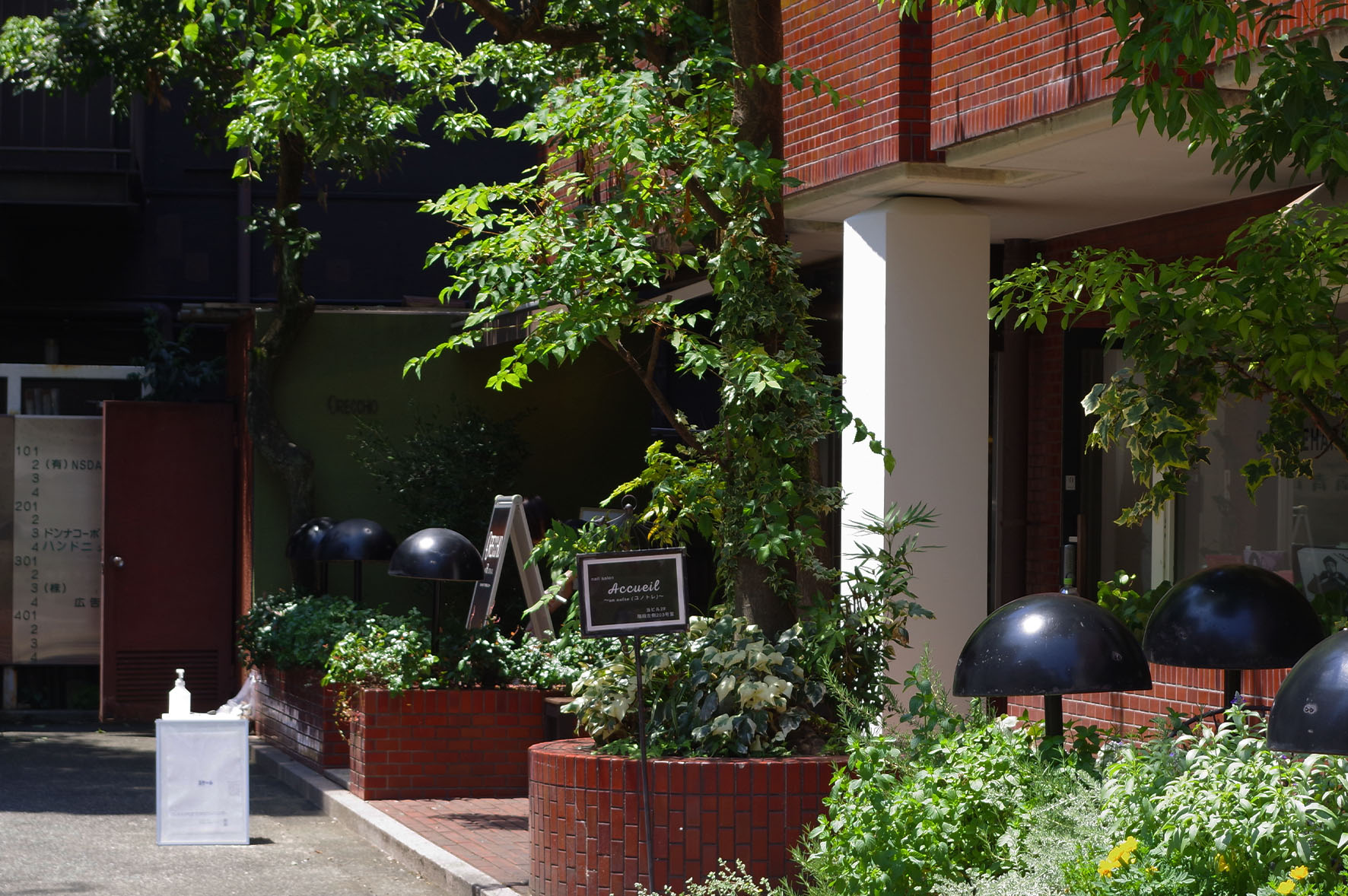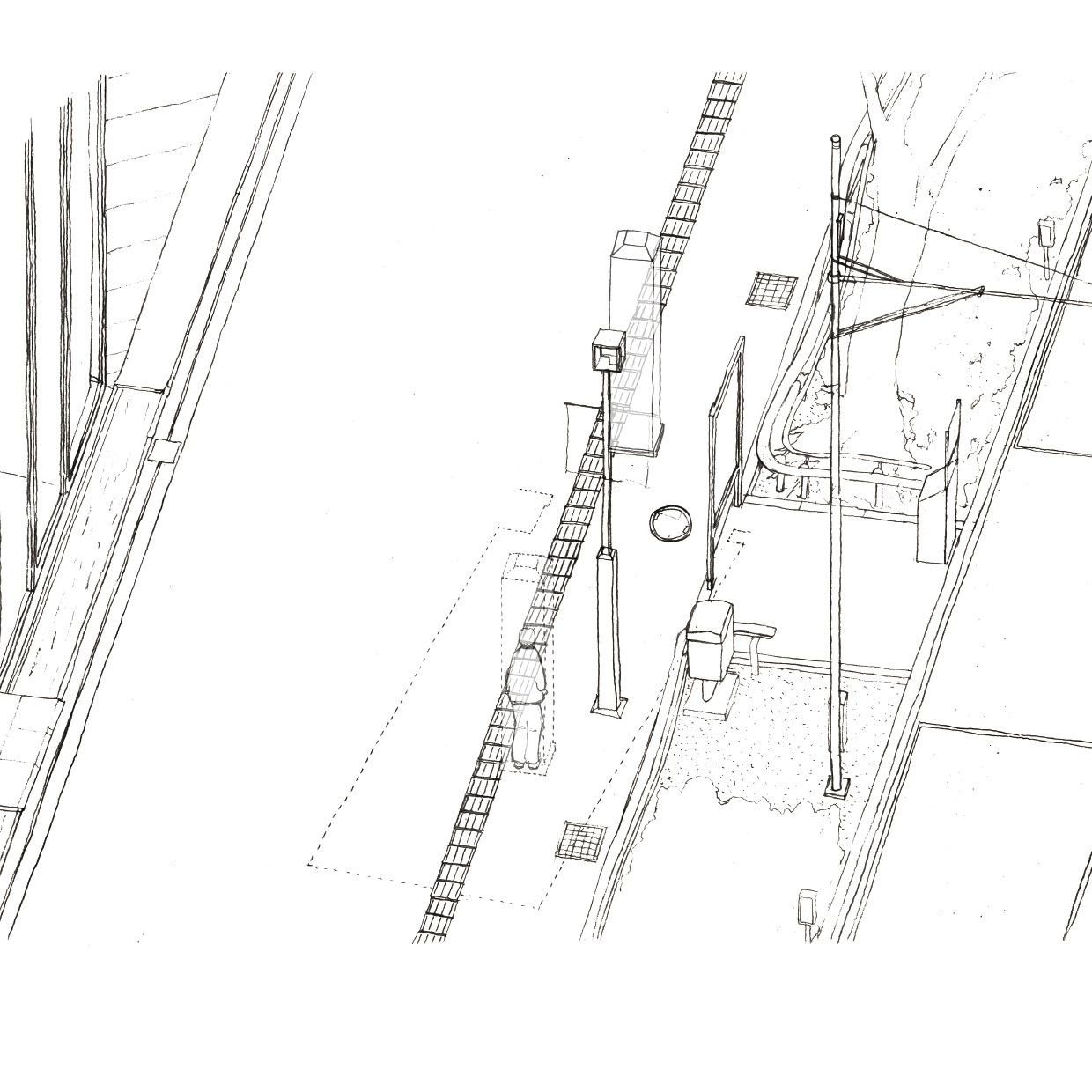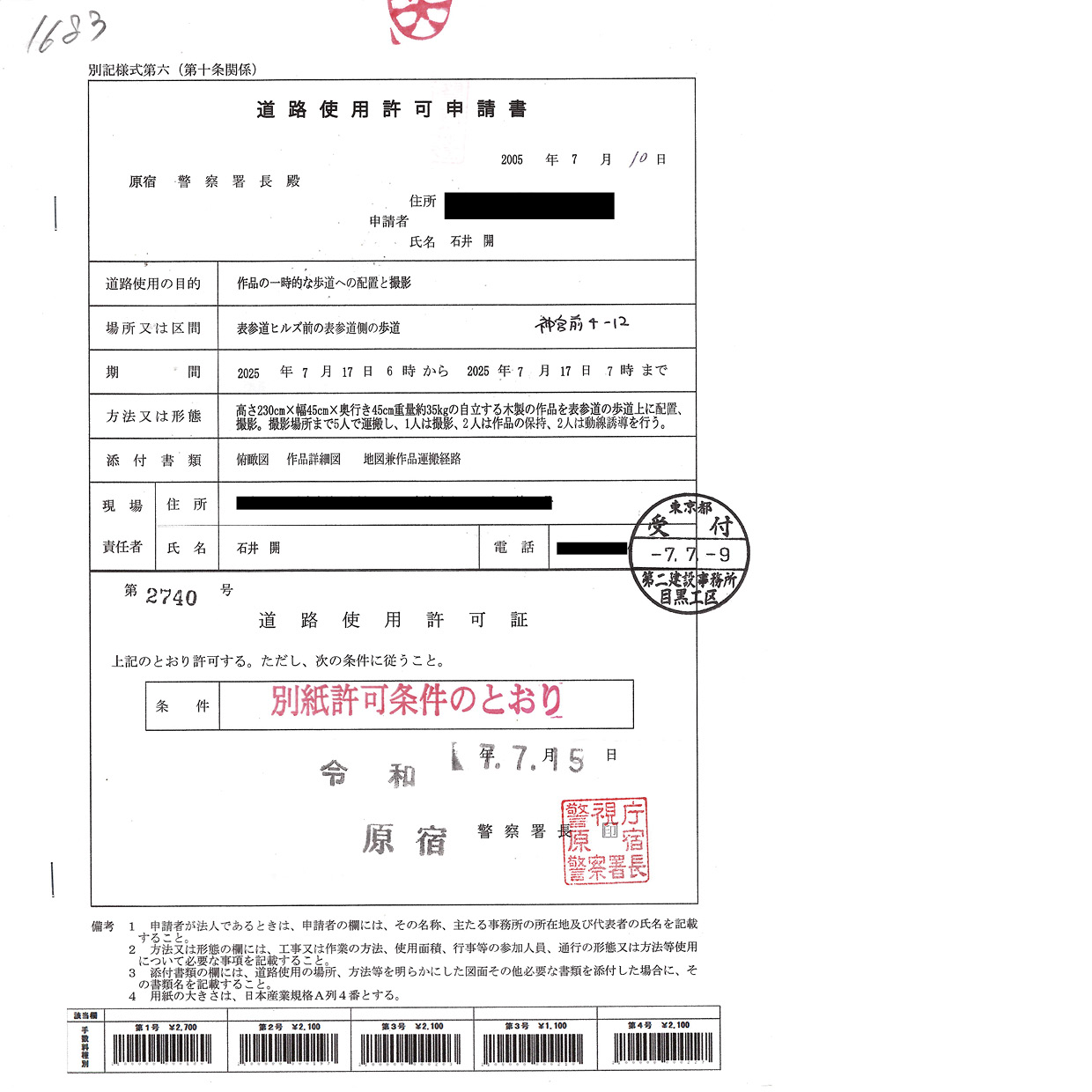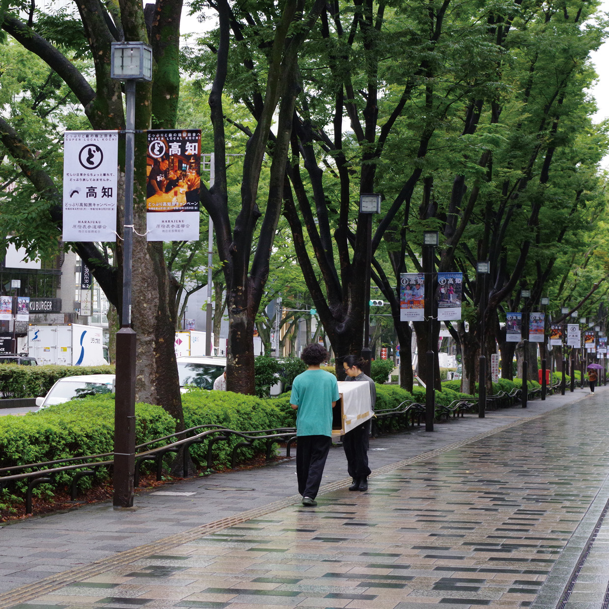 2 つの木(主)はそうした、ギャラリーを訪れる鑑賞者と在廊者、外を通り過ぎる人々との距離を調整するものとしてあります。