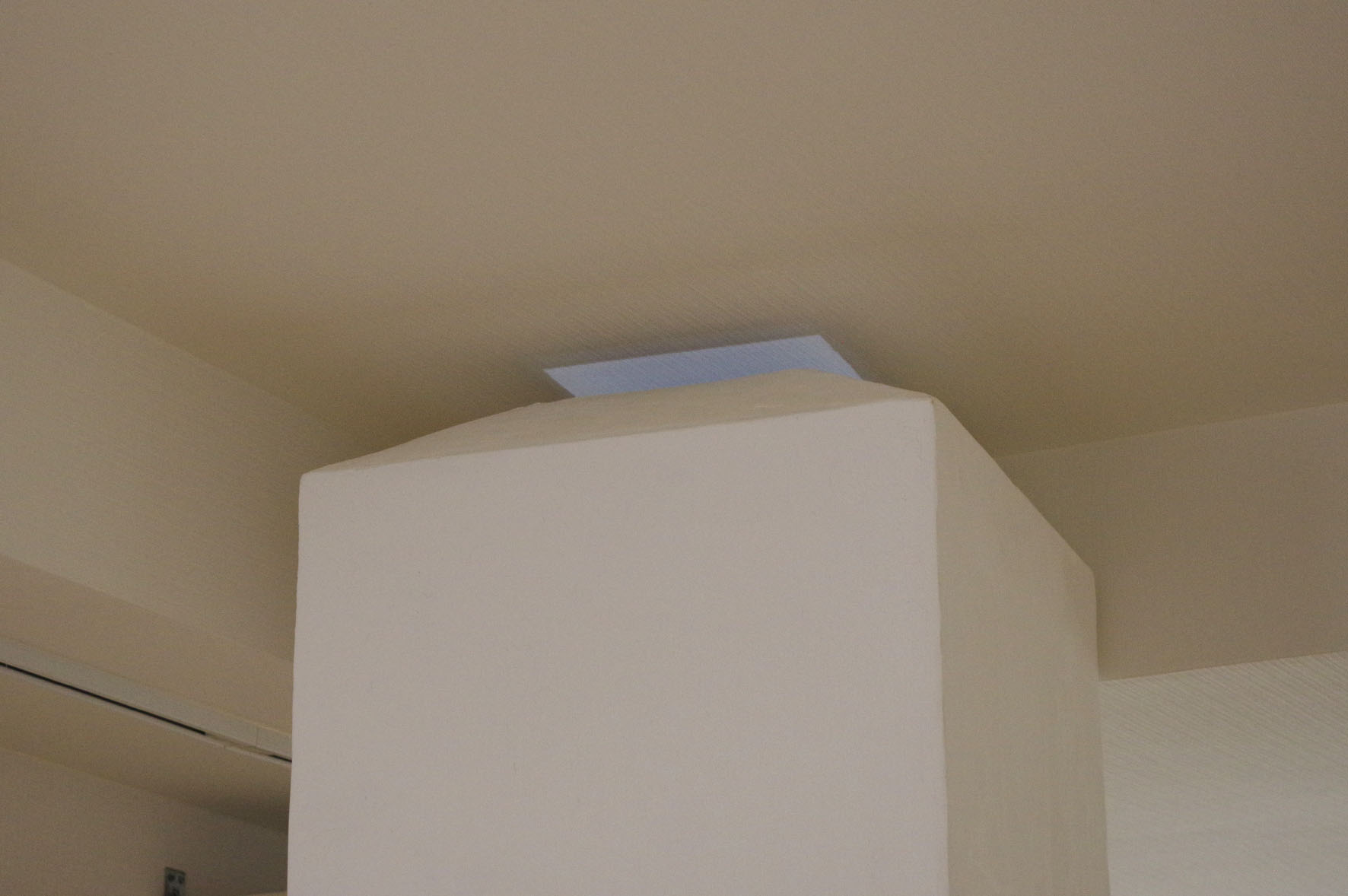 室内の柱も仕上げに壁紙を貼ることを考えていたのですが、こちらは展示空間の中央付近に位置しているため、どうしても既存の壁紙に対して新しさが際立ってしまいます。