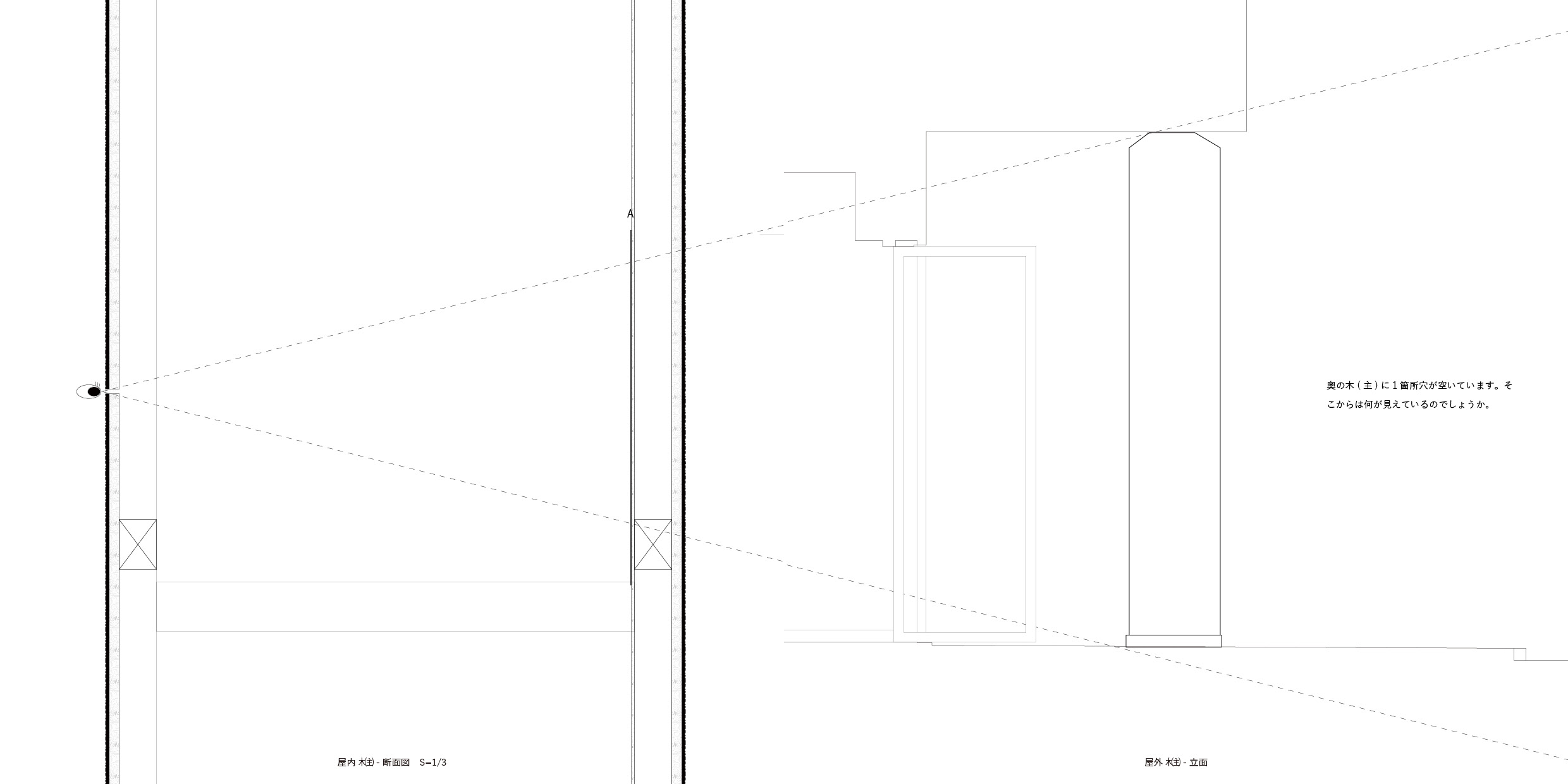 さて、奥の木(主)に 1 箇所穴が空いています。そこからは何が見えているのでしょうか。