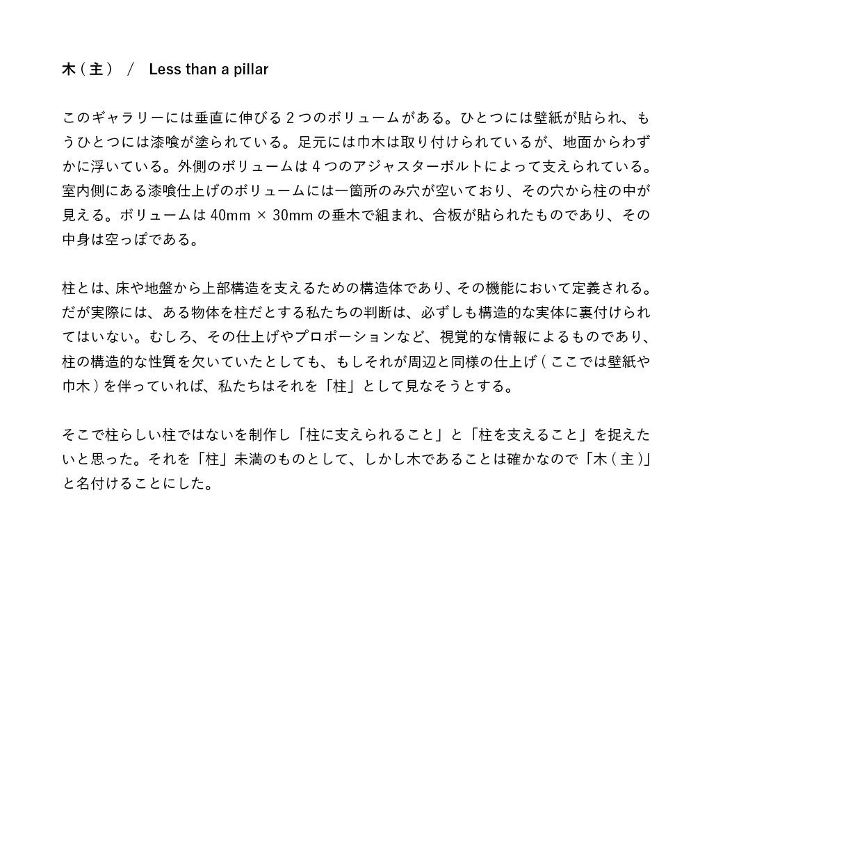 このボリュームは「柱」未満のものとして、しかし木で構成されていることは確かなので「木(主)」と名付けられている。』